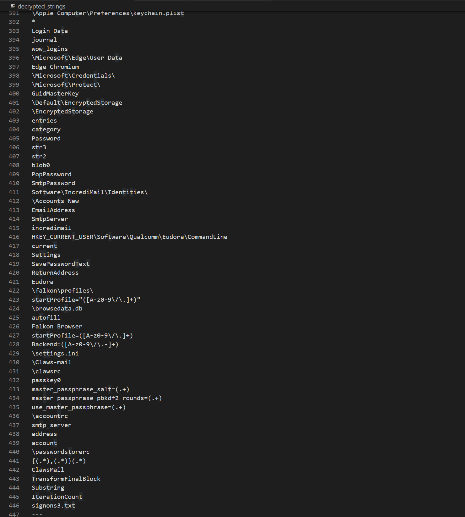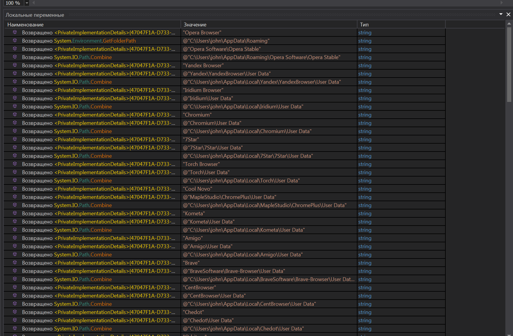Все имена закодированы и после раскодирования мы можем увидеть пути к данным различных браузеров