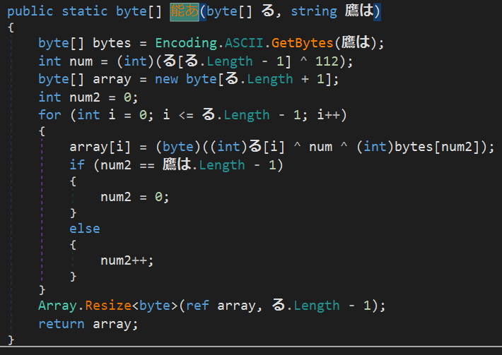В конструкторе класса происходит декодирование массива, через операцию xor с его порядковым номером и ключом 0xAA