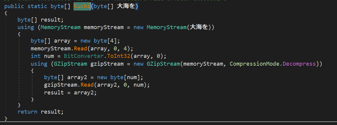 Во второй стадии, библиотека использует второй ресурс под именем hLuPu.png, преобразовывает его в массив байт. Далее выполняется операция xor с заранее известным ключом и в результате получается gzip архив, который содержит вредоносную нагрузку.