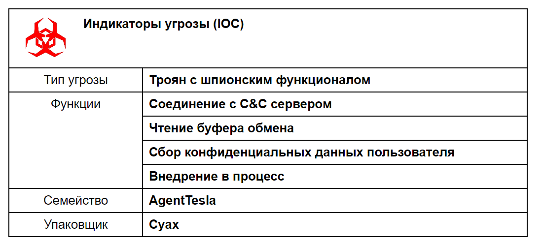 В ходе ручного анализа мы также нашли много схожих характеристик с вредоносным ПО AgentTesla.