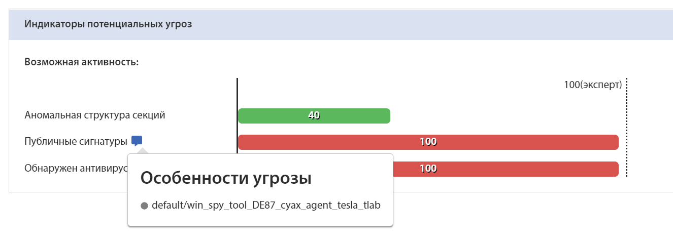 В декабре 2020 года вредоносное программное обеспечение было направлено на корпоративную почту АО «Центр развития трудовых ресурсов», которая является нашим клиентом и использует систему tLab. Данное вредоносное ПО не обнаруживалось антивирусным программным обеспечением на статическом, сигнатурном уровне, однако наша система tLab обнаружила данную угрозу на поведенческом и эвристическом уровнях.