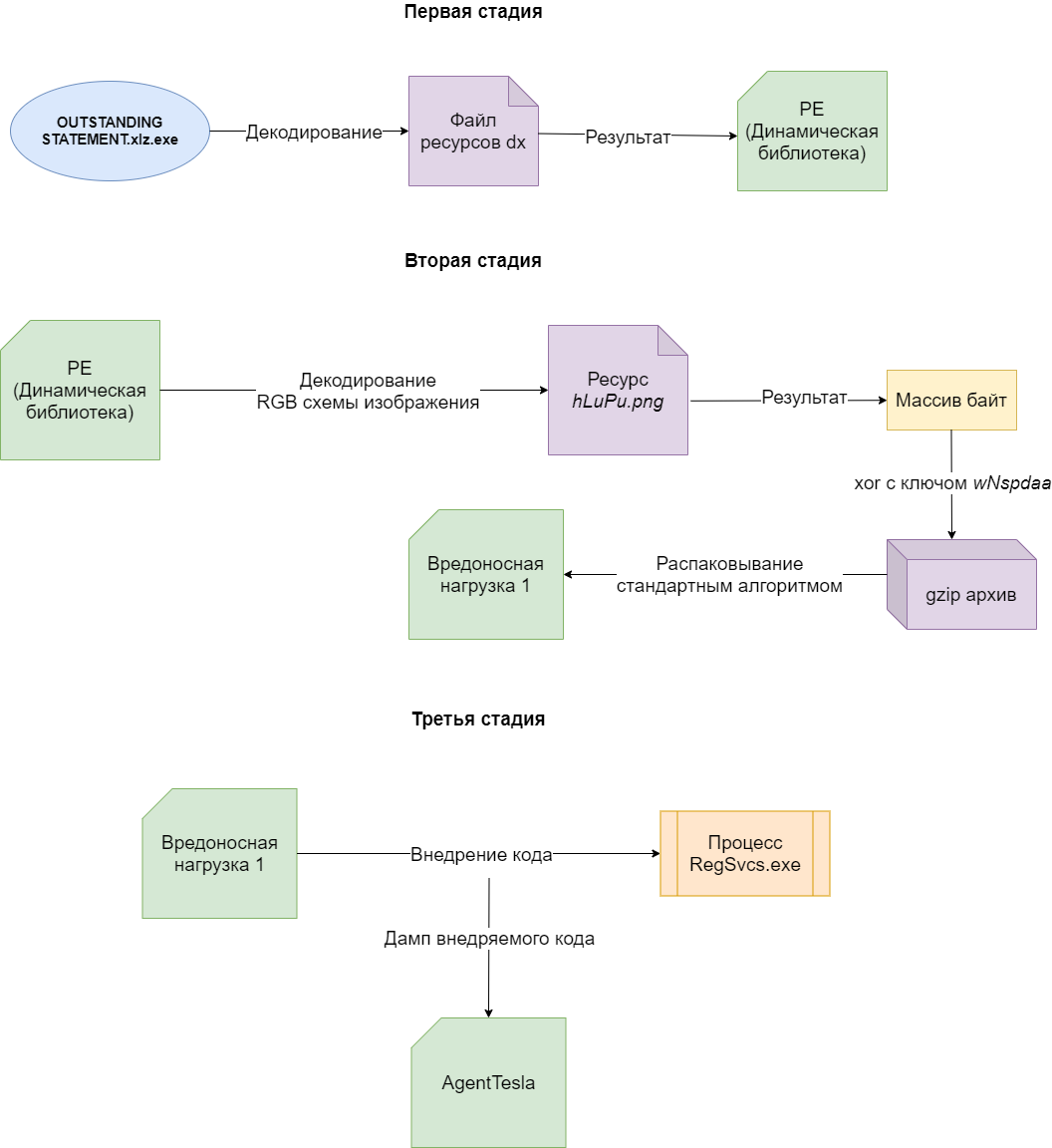 Общая схема работы образца OUTSTANDING STATEMENT.xlz.exe