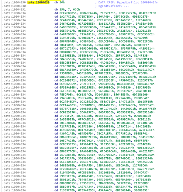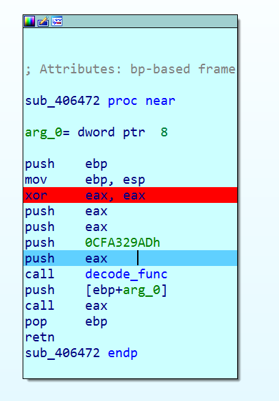 Функция Bgcedtxsf раскодирует вредоносную нагрузку путем функции XOR с заранее известными значениями.