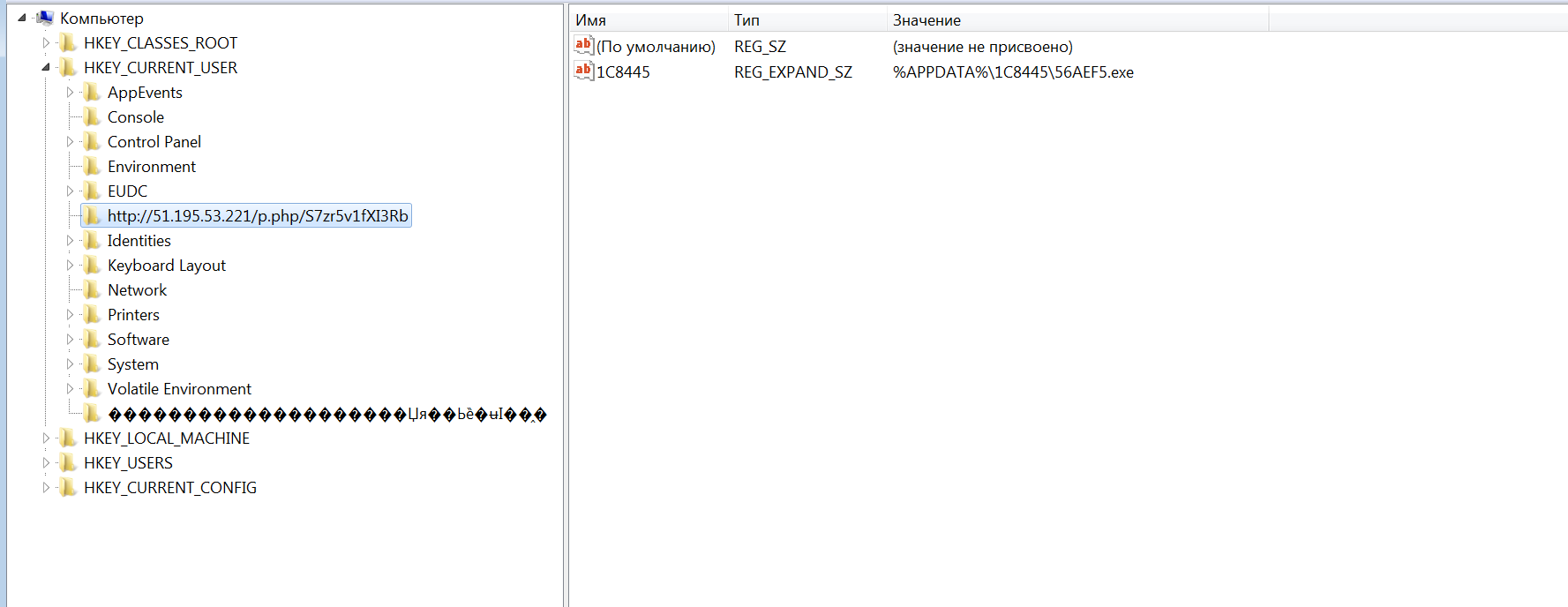 Lokibot создает скрытую папку в APPDATA с именем длиной 5 символов и копирует туда себя. В реестре Lokibot создает папку с адресом C&C сервера и путем до своей копии
