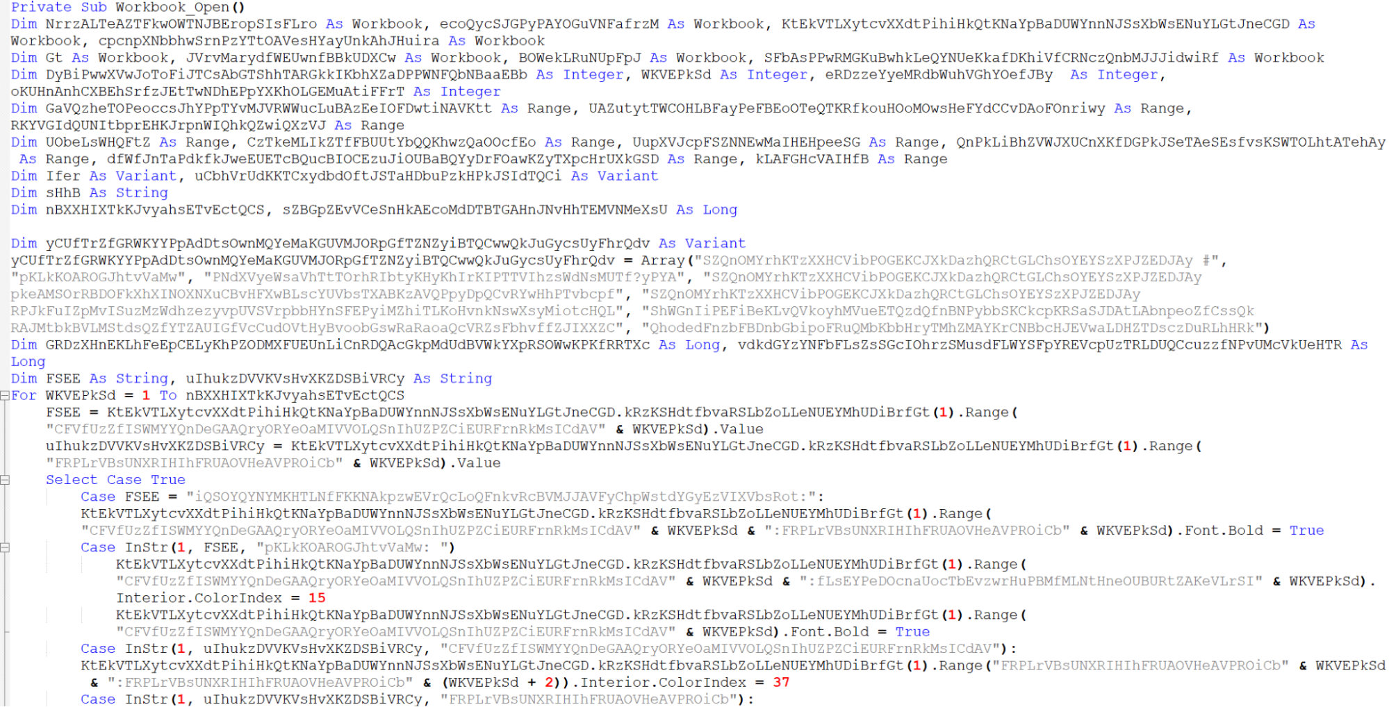 Содержимое VBA макроса сильно обфусцировано