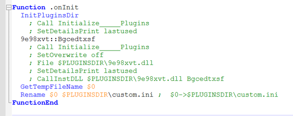 Nullsoft Scriptable Install System (NSIS) — система создания установочных программ для Microsoft Windows с открытым исходным кодом, разработанная компанией Nullsoft. Для установки программ, NSIS использует специальный скрипт, в котором содержится алгоритм установки. Если распаковать вредоносную нагрузку программой 7zip, то мы получим скрипт установки и папку с плагинами